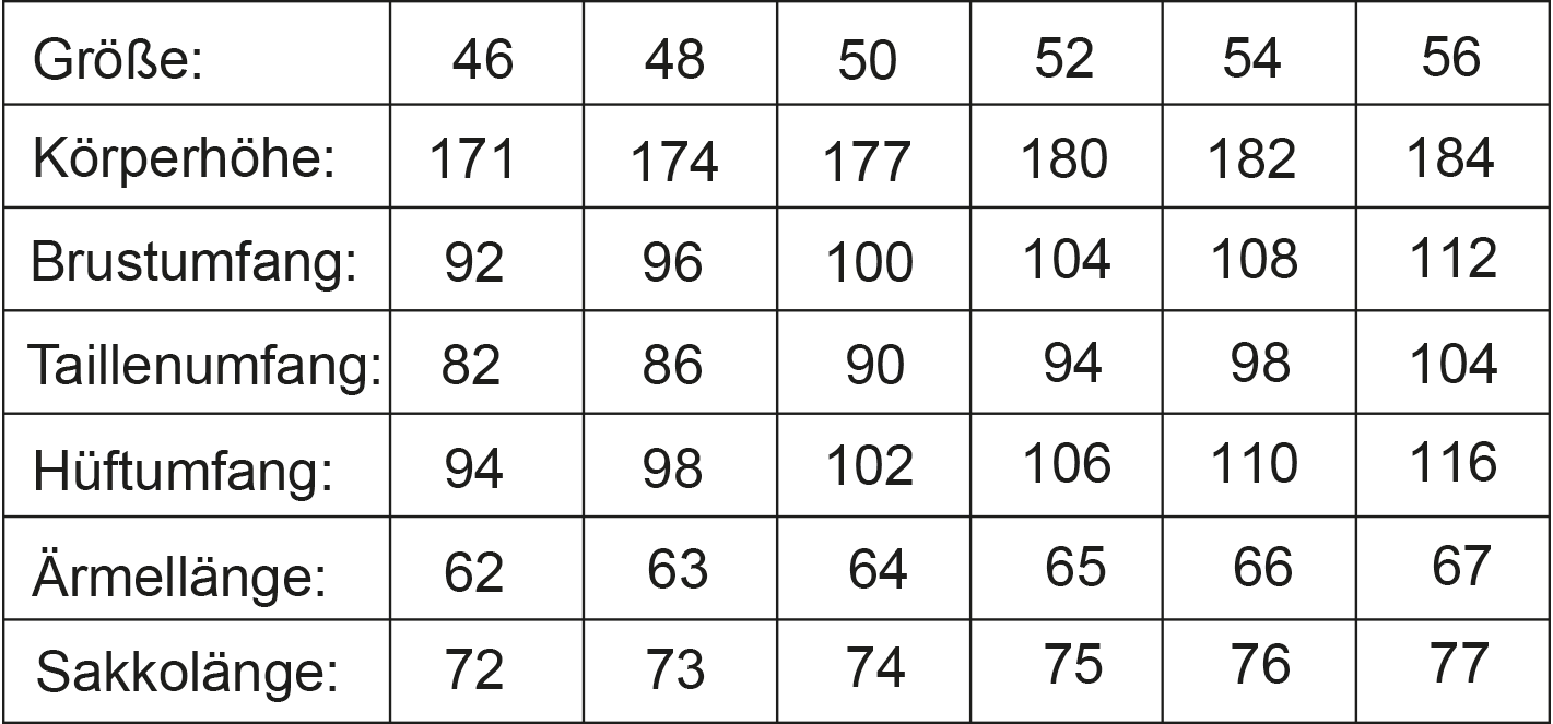 Das Schnittmuster Grundschnitt Slim-Fit Sakko einreihig, mit 2 Knöpfen und zusätzliches Vorderteil mit Schalkragen verfügt über sechs Größen: 46 – 48 – 50 – 54 – 56. Der Schnitt ist ohne Nahtzugaben konstruiert. Ihr erhaltet anhand der technischen Zeichnung, der detaillierten Beschreibung und der Größentabelle einen Einblick in die Modelle. Die Kalkulation des Stoffverbrauchs hilft Ihnen bei der Beschaffung eines passendes Materials.