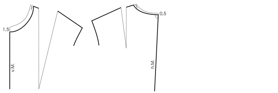 This collar shows a very good fit due to the separation of collar stand and collar. First draw the collar and the collar stand in one like a normal convertible collar. Then separate the collar stand from the collar and reduce the width at the collar seam and the collar stand seam. This way the collar has a more snug fit around the neck and is not as flat as a regular convertible collar.