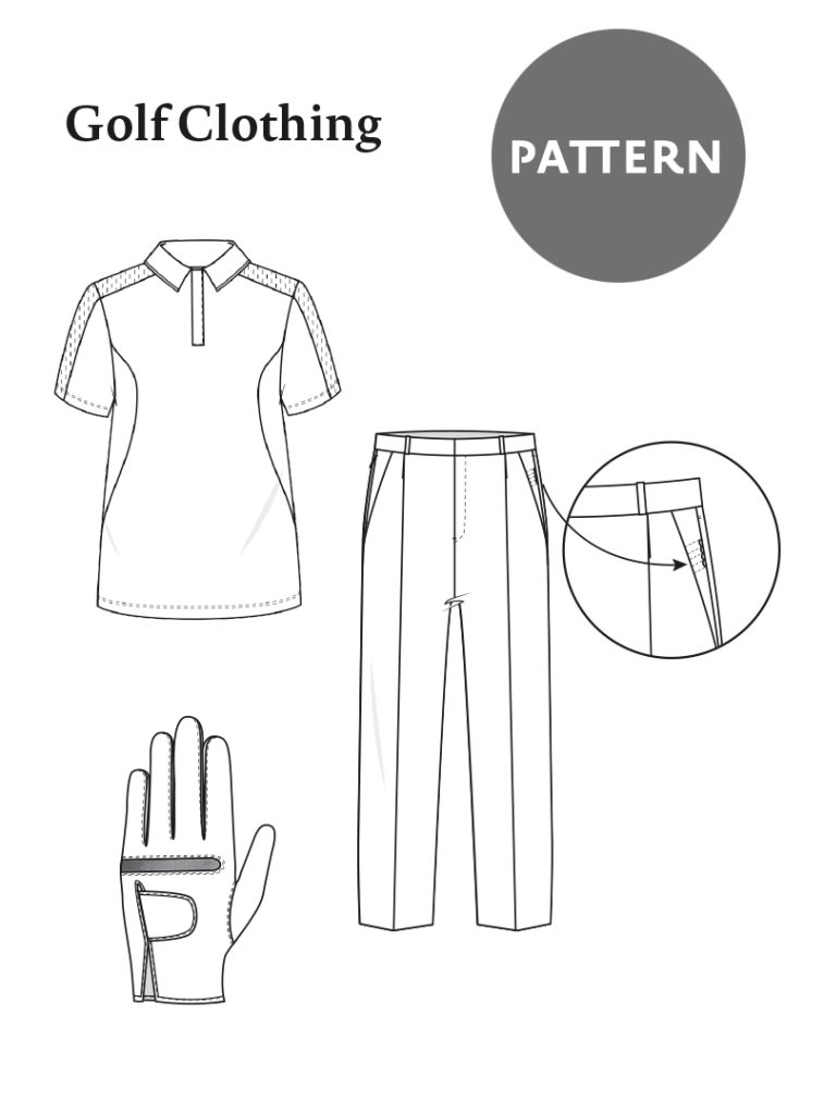 The enclosed pattern sheet contains golfwear in sizes 44–58.
