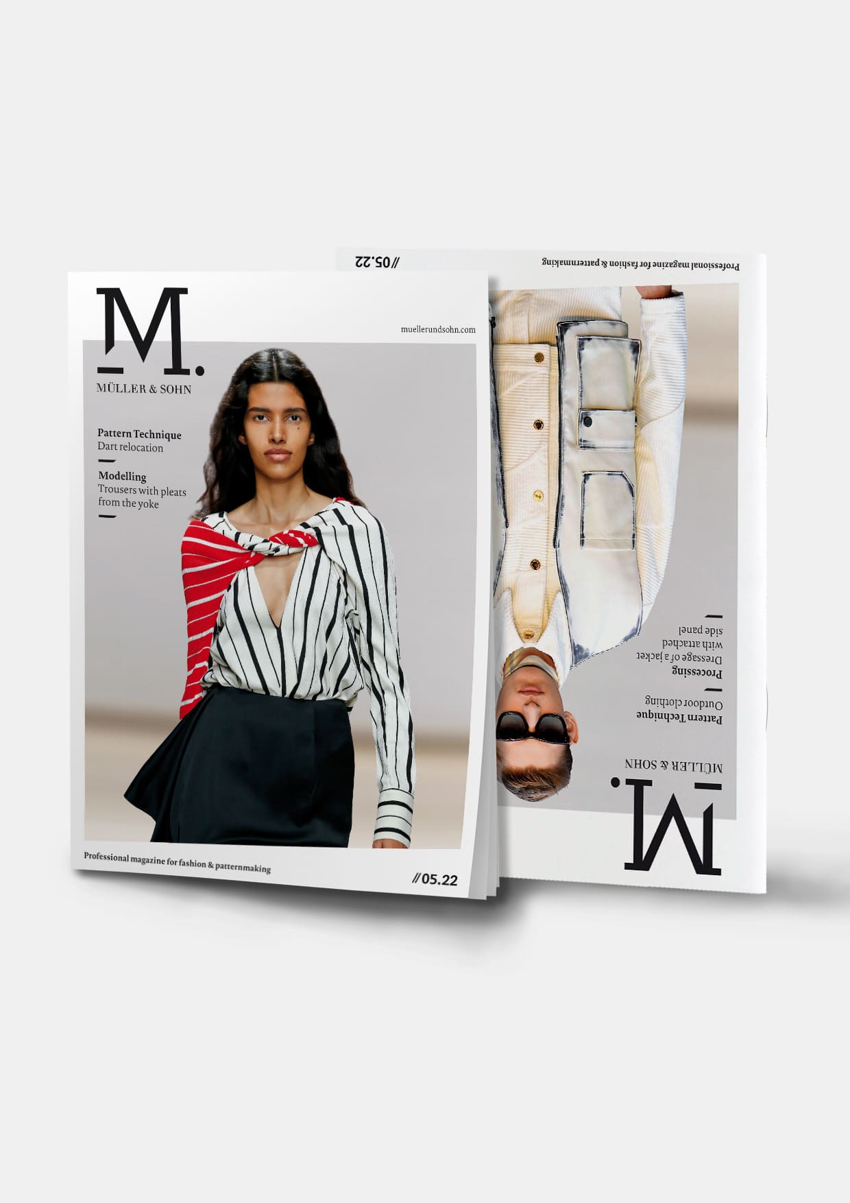 The magazine specialized in fashion and pattern making is published ten times a year as a turnaround edition with topics on women’s and men’s fashion. The magazine is available for download in English. Each issue of M. Müller & Sohn magazine contains an enclosed sewing pattern.