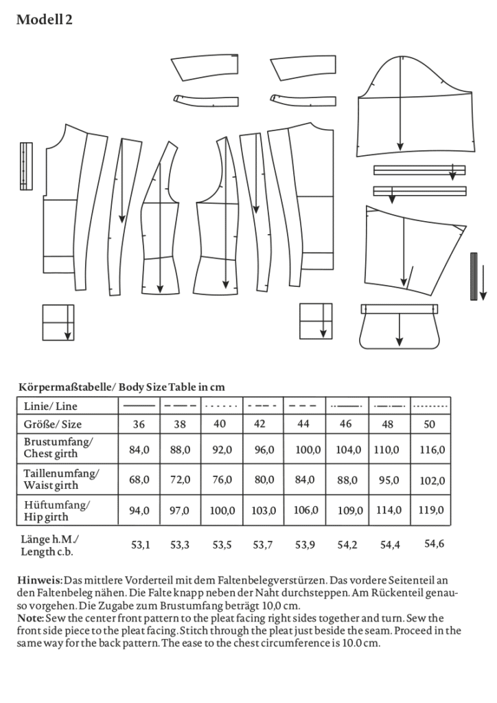 In European Sizes 36 – 50. Printed pattern sheet or PDF download (depending on purchasing option).- Download