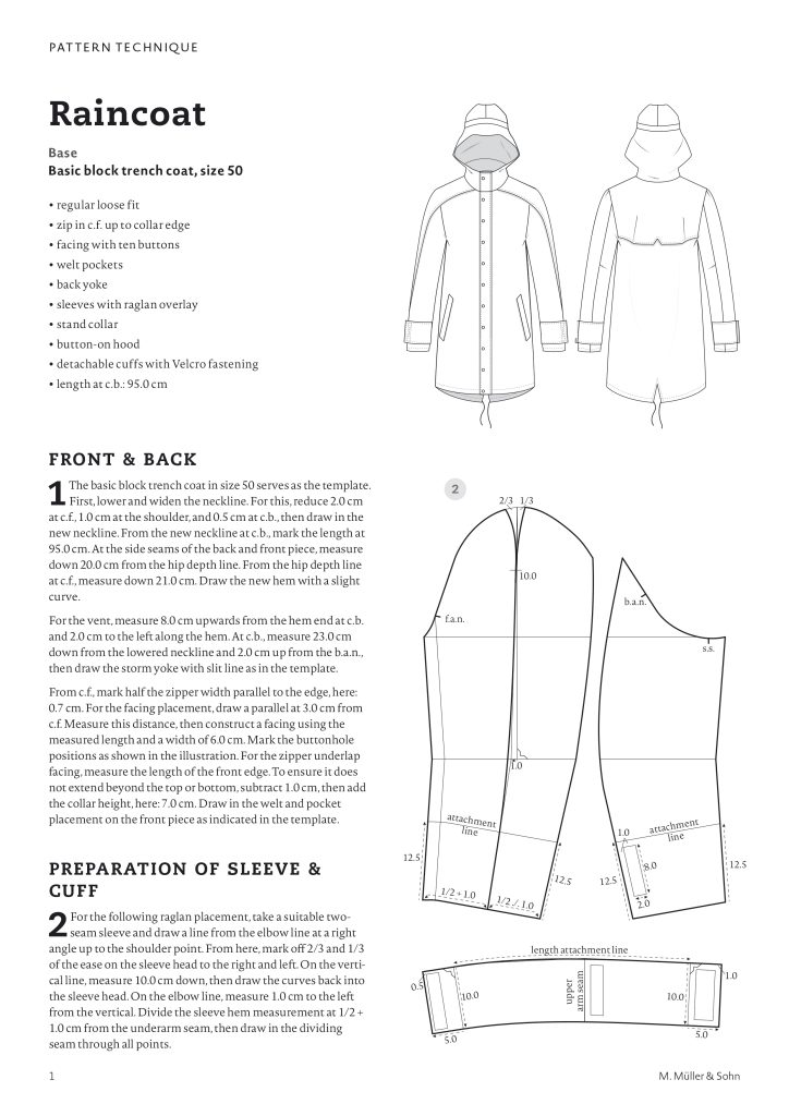 In this e-dossier, you will find the instruction on the pattern construction for rainwear- raincoat, raincoat with raglan, rain jacket and rain trousers.