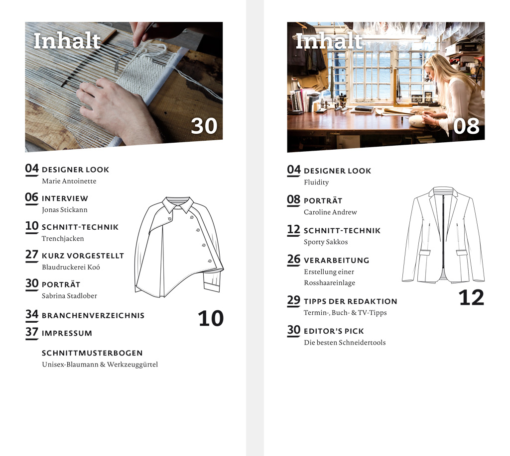 Fachmagazin für Mode und Schnitt-Technik // Trenchjacken // Sporty Sakkos // Erstellung einer Rosshaareinlage // Schnittmuster Unisex Blaumann & Werkzeuggürtel