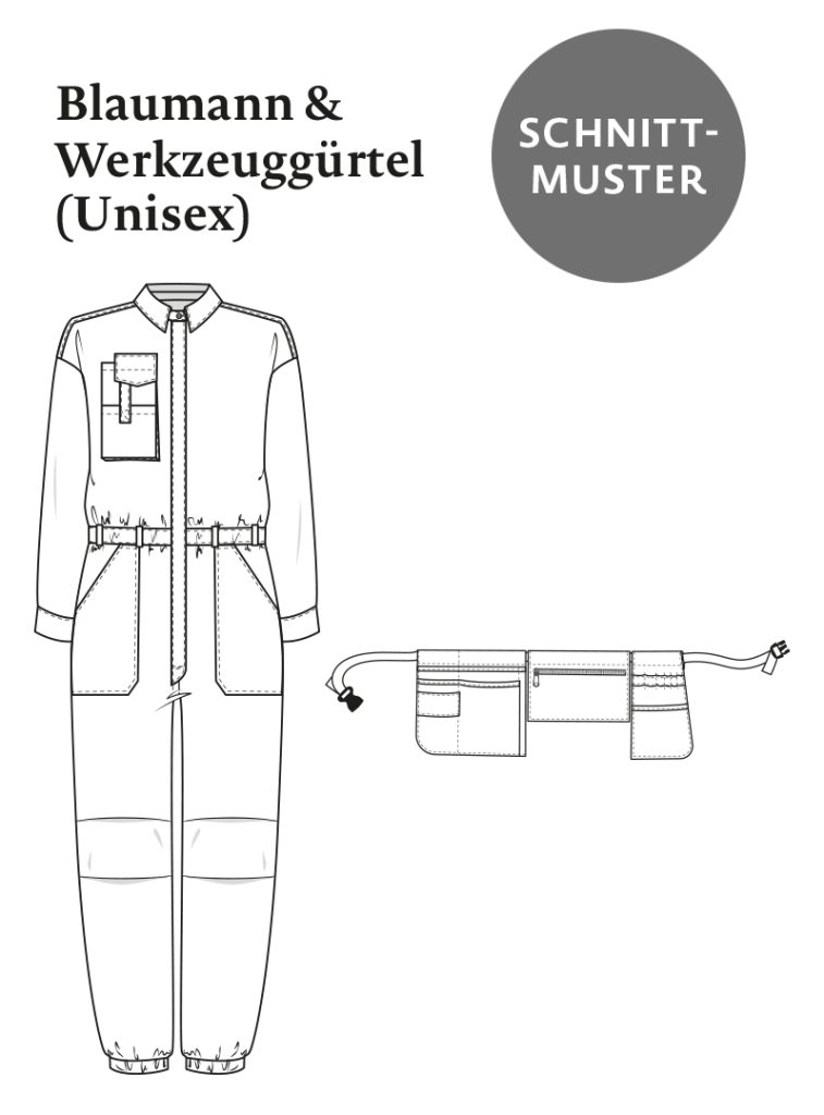 Das beiliegende Schnittmuster enthält einen Unisex-Blaumann & Werkzeuggürtel  in den Größen XS – XXL.