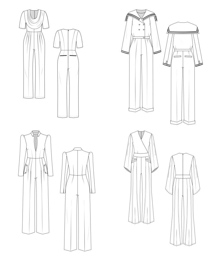In diesem E-Dossier findet Ihr die Anleitung zur Schnittkonstruktion von vier Modellschnitten für Overalls.
