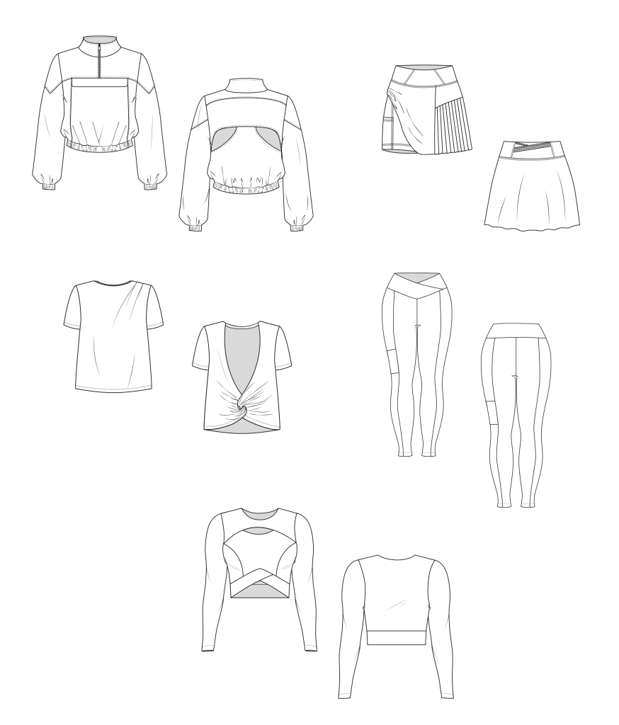 In diesem E-Dossier findet Ihr die Anleitung zu einem Grundschnitt für eine lose Jacke und fünf Modelle für Sportbekleidung für große Größen.